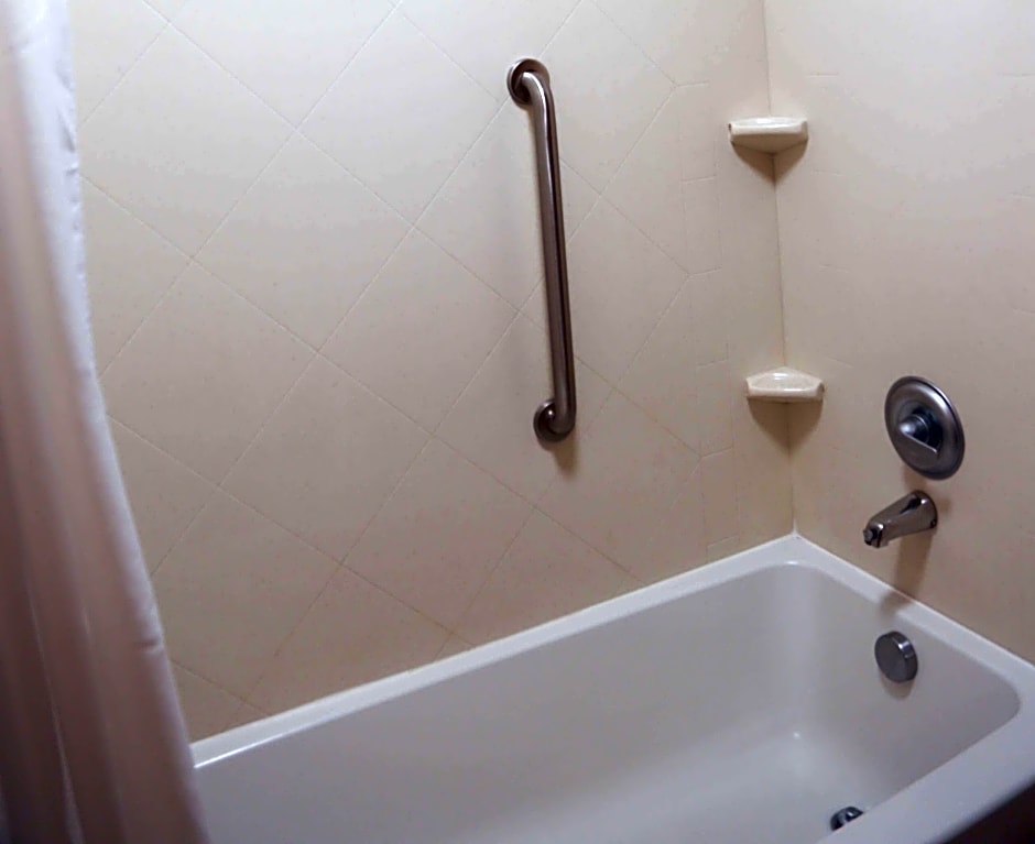 This accessible room includes a flat-screen TV, desk and bath tub.